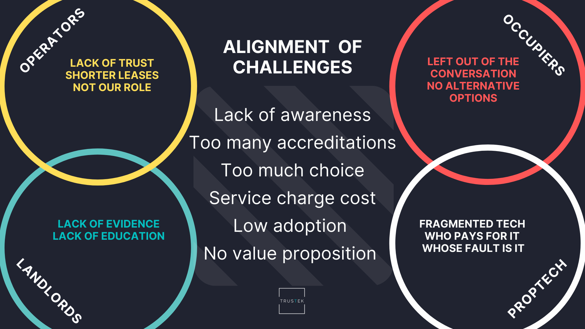 Despite each stakeholder group engaging with proptech in one way or another, often in an isolated manner, many of the challenges faced were fully aligned.